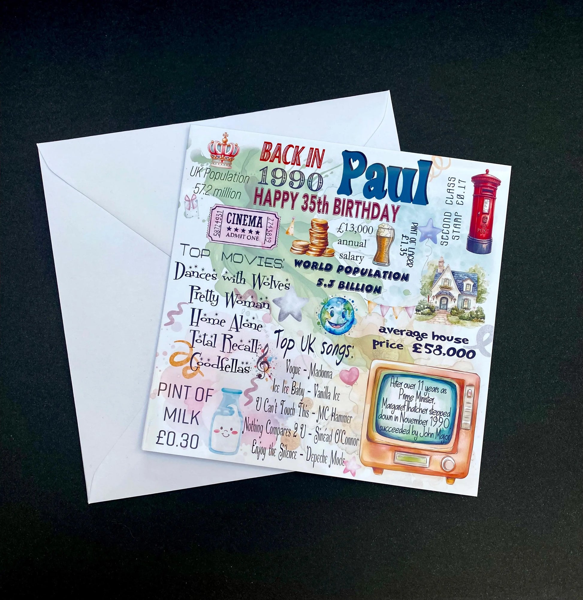 This personalised 1990 card is more than just paper - it's a trip down memory lane filled with fun, nostalgia, and ''Wow, I did not know that!'' moments.