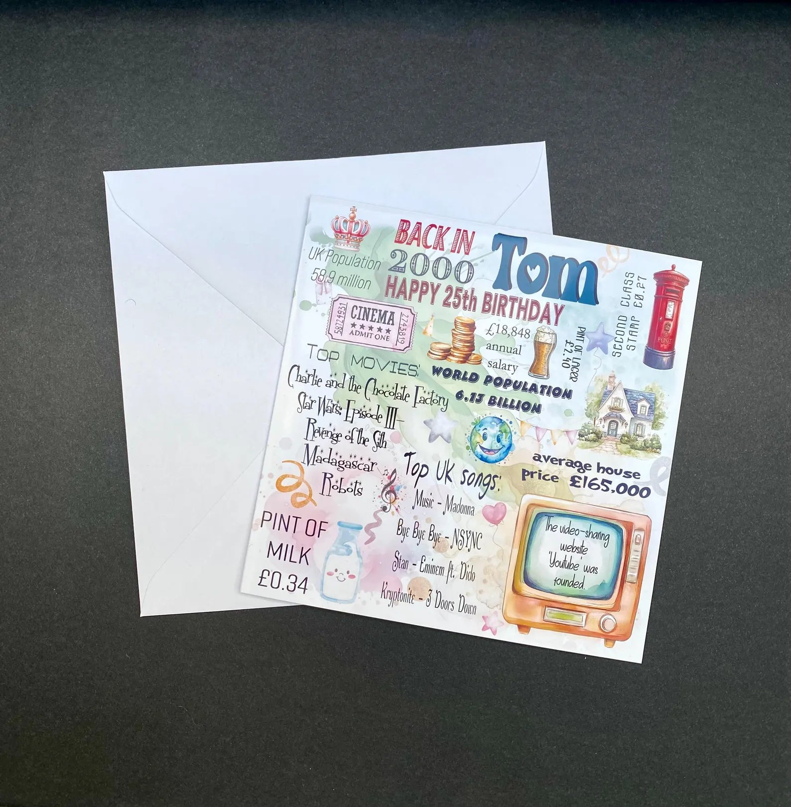 This personalised 2000 card is more than just paper - it's a trip down memory lane filled with fun, nostalgia, and ''Wow, I did not know that!'' moments.